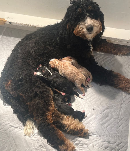 Check our upcoming litter page and/or join our mailing list to get notified of upcoming mini-bernedoodle litters!